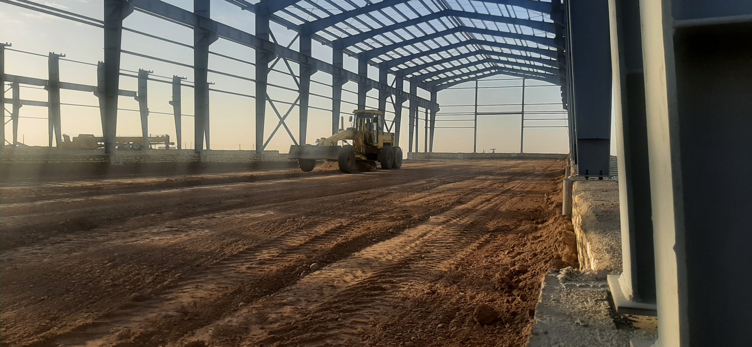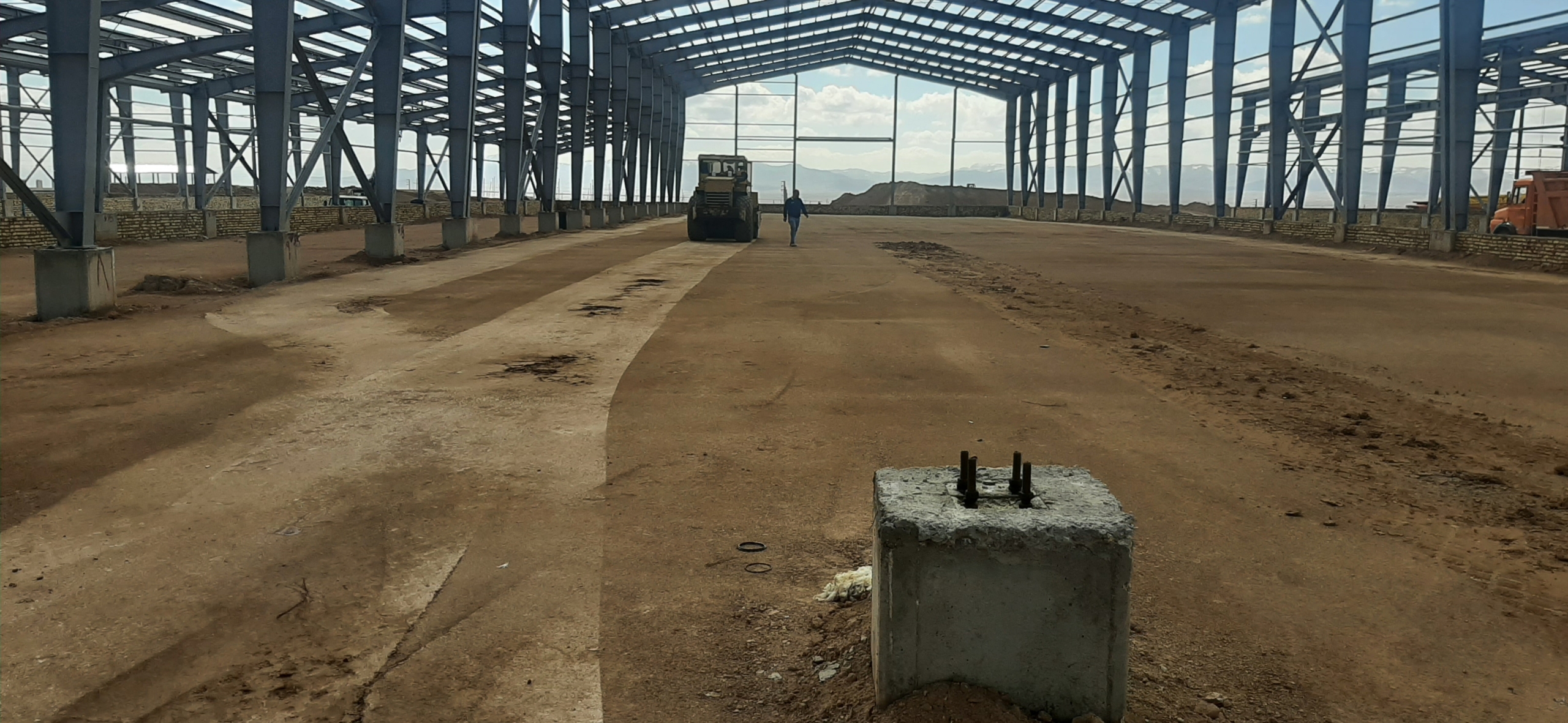 عملیات خاکریزی و تراکم خاک داخل سوله های پروژه رهام هامون